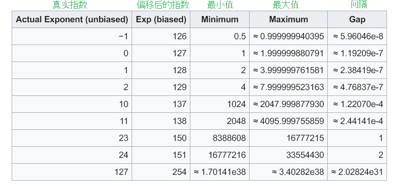 注意: 2^0 ~ 2^1, 这个范围还是被等分为2^23份间隔, 2^-126 ~ 2^-125, 这个范围还是被等分为2^23份间隔...