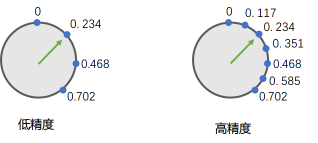 通过这个例子, 希望大家能够直观的认识到 "表盘的间隔" 和 "表盘的精度" 之间, 存在着密切的关系. 这将是后文进行讨论的基础.