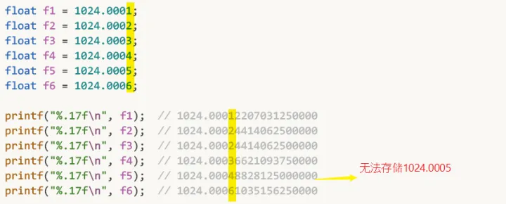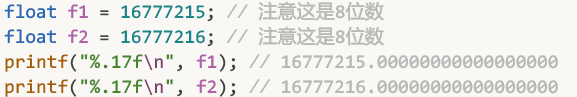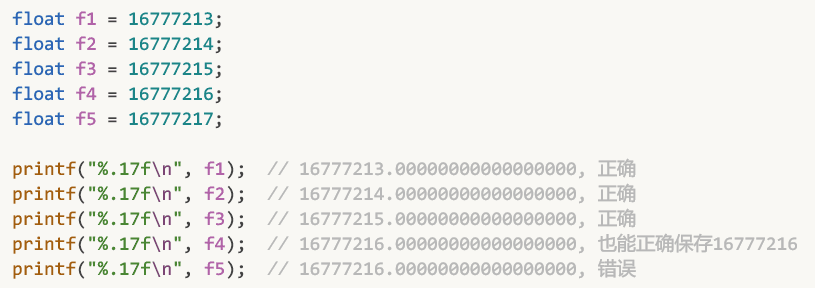 对于 float f = xxx; 其中xxx是个数值, 不管xxx你是用什么进制书写, 只要是使用32位浮点数作为容器, 就最多只能精确记录2^24种状态, 就好像一个32位浮点数大楼中一共有2^24个房间一样.