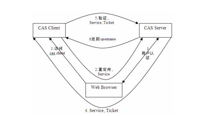 CAS Client 与受保护的客户端应用部署在一起,以Filter方式保护 Web 应用的受保护资源,过滤从客户端过来的每一个Web请求,同时, CAS Client会分析HTTP 请求中是否包请求 Service Ticket( 上图中的 Ticket) ,如果没有,则说明该用户是没有经过认证的,于是,CAS Client会重定向用户请求到CAS Server( Step 2 )。 Step3是用户认证过程,如果用户提供了正确的Credentials, CAS Server 会产生一个随机的 Service Ticket,然后,缓存该 Ticket ,并且重定向用户到CAS Client(附带刚才产生的Service Ticket), Service Ticket 是不可以伪造的,最后, Step 5 和 Step6是 CAS Client 和 CAS Server之间完成了一个对用户的身份核实,用Ticket查到 Username ,因为 Ticket是 CAS Server产生的,因此,所以 CAS Server 的判断是毋庸置疑的。