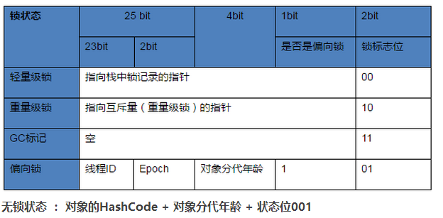 | 指向锁记录的指针 | 00 | 轻量级锁定 |