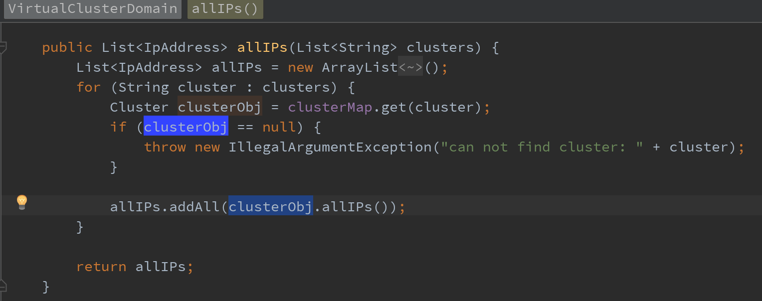 从每个cluster拿出ip列表,组合就得到所有的ip列表了