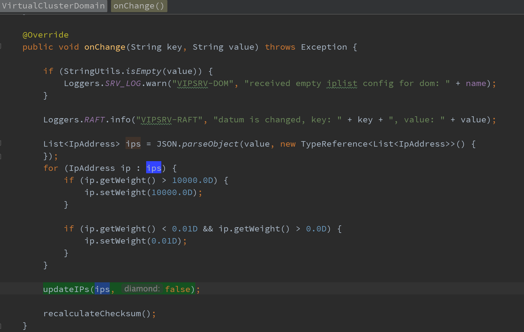 ipAddressMap.values() 其实就是旧的ip加上newIPs