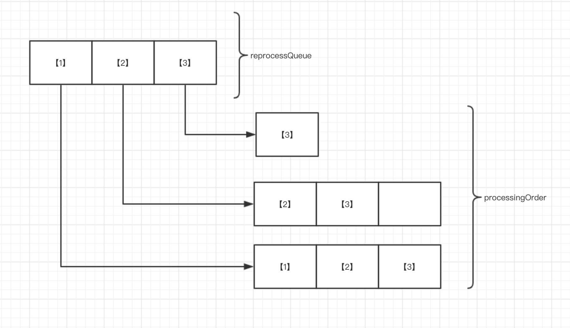 processingOrder)- 粉线:接收线程( Runner )将重新执行队列,接收队列提交到待执行队列。