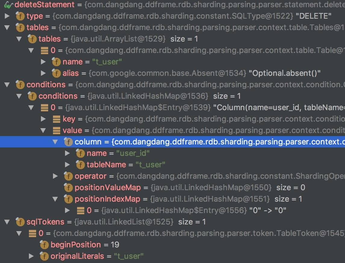 我们来看下 DELETE IGNORE FROM t_user WHERE user_id = ? 的解析结果: