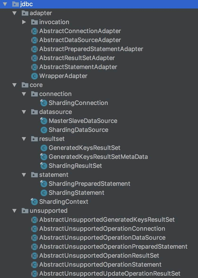 扯远了,下面来看看 Sharding-JDBC jdbc 包的结构: