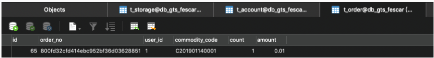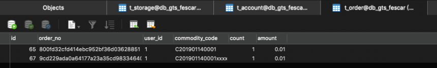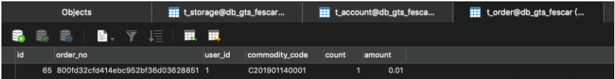 t_order表,新增了一条记录。如下图: