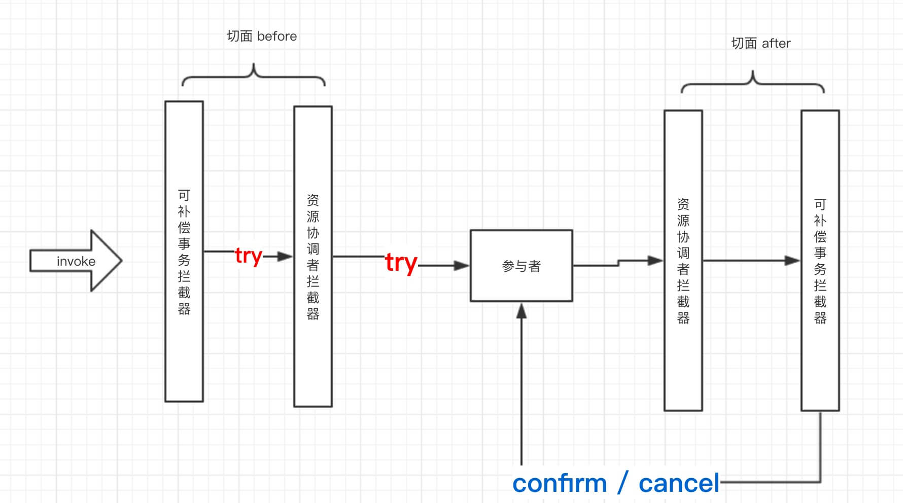 - 在 Try 阶段,对事务的发起、传播。