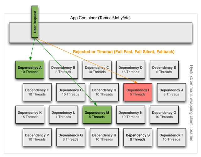 - 线程池会隔离每一个依赖,避免他们相互影响,从而保护了整个系统