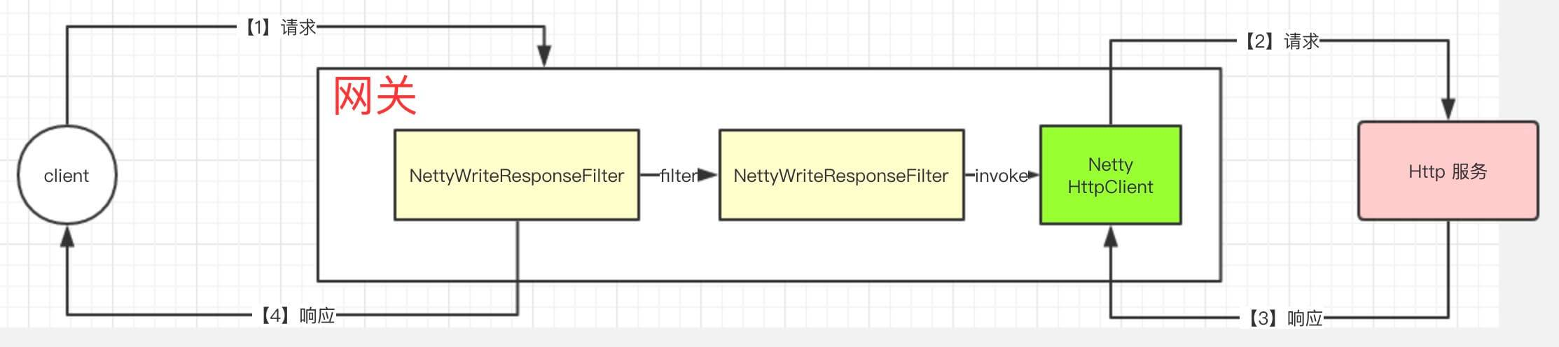 CLIENT_RESPONSE_ATTR。后续 NettyWriteResponseFilter 将 Netty Response 写回给客户端。 - ——— 第 66 行 :提交过滤器链继续过滤。