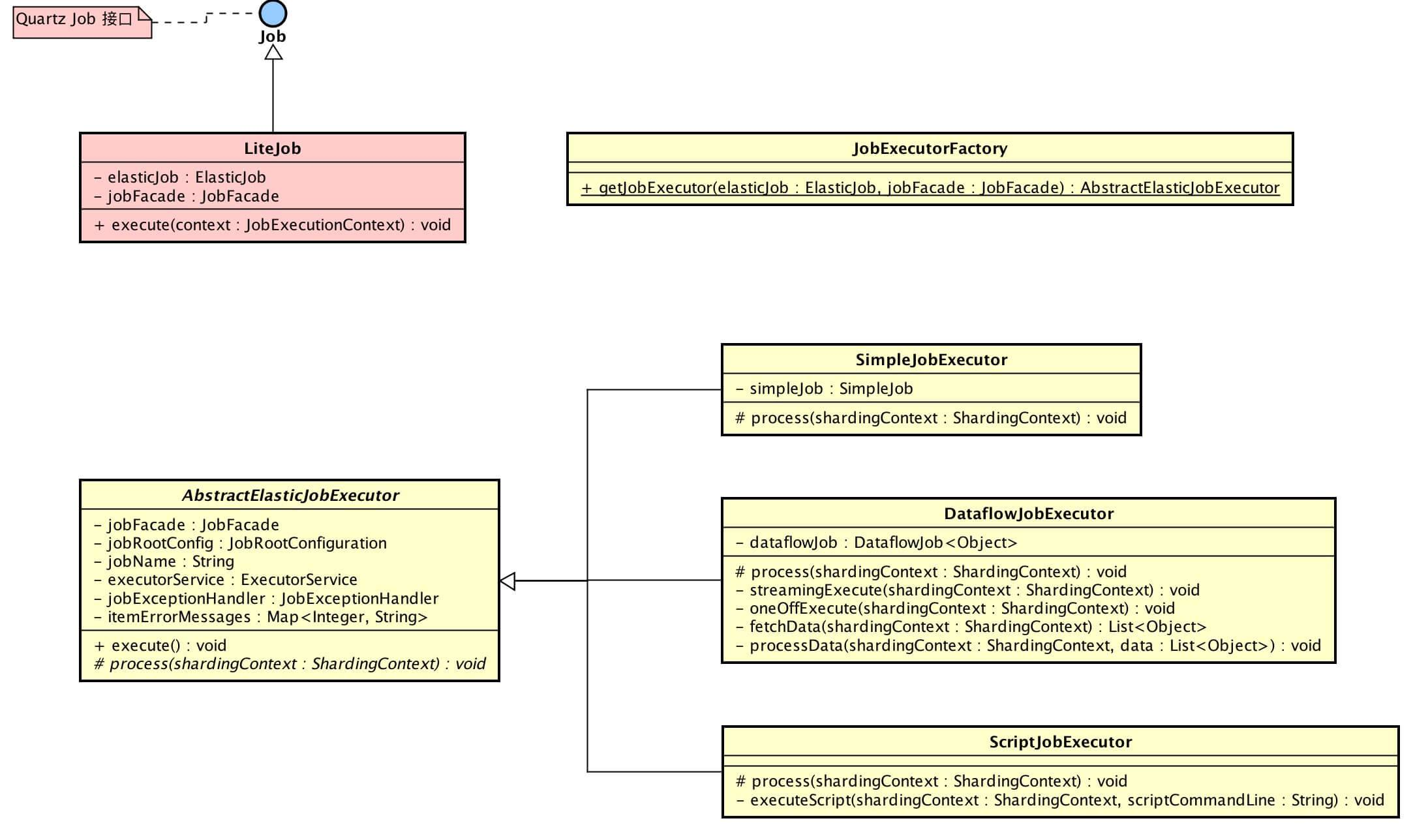 - JobExecutorFactory,作业执行器工厂,根据不同的作业类型,返回对应的作业执行器。