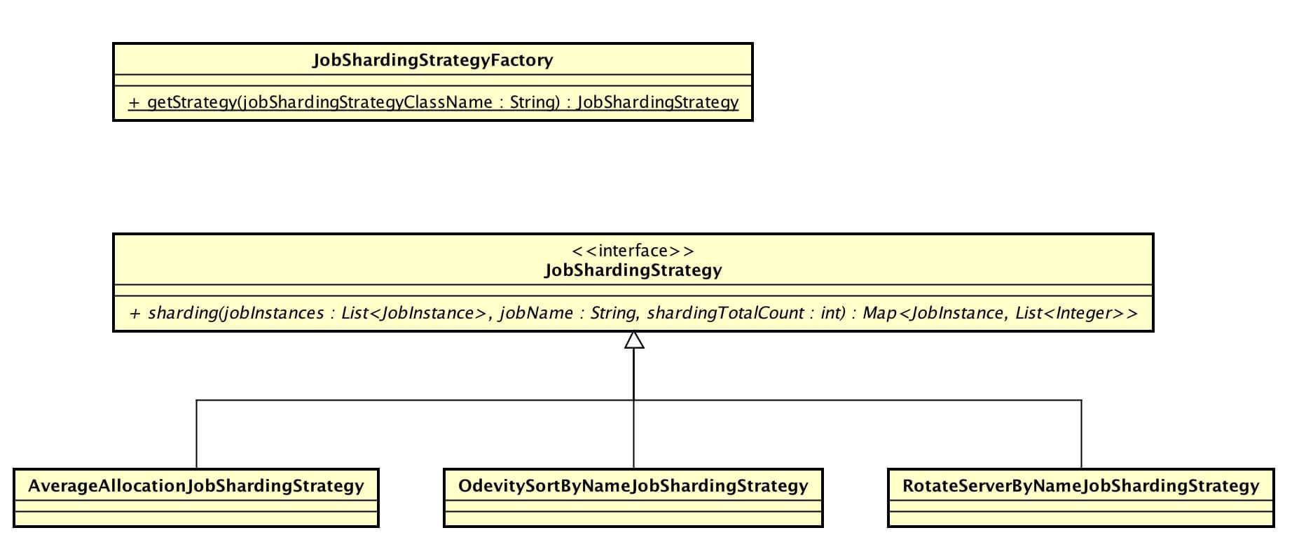 OdevitySortByNameJobShardingStrategy,根据作业名的哈希值奇偶数决定IP升降序算法的分片策略。