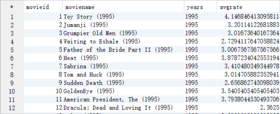 from t_movie a join t_rating b on a.movieid=b.movieid