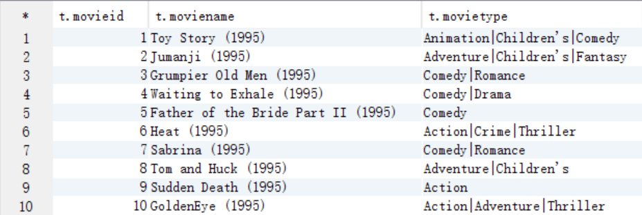 2、movies.dat 数据格式为: 2::Jumanji (1995)::Adventure|Children's|Fantasy,