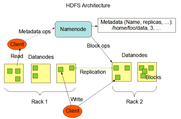 这是和HDFS系统底层设计实现有关系的,HDFS本身的设计就是用来解决海量大文件数据的存储.,他天生喜欢大数据的处理,大文件存储在HDFS中,会被切分成很多的小数据块,任何一个文件不管有多小,都是一个独立的数据块,而这些数据块的信息则是保存在元数据中的,在之前的博客HDFS基础里面介绍过在HDFS集群的namenode中会存储元数据的信息,这里再说一下,元数据的信息主要包括以下3部分: