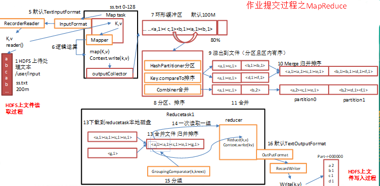 (11)MR向两个接收到任务的NodeManager发送程序启动脚本,这两个NodeManager分别启动maptask,maptask对数据分区排序。
