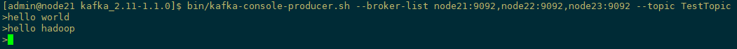 [admin@node21 software]$ cd /opt/module/kafka_2.11-1.1.0 [admin@node21 kafka_2.11-1.1.0]$ mkdir logs