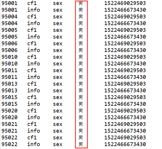 Filter valueFilter = new ValueFilter(CompareOp.EQUAL, new SubstringComparator("男"));