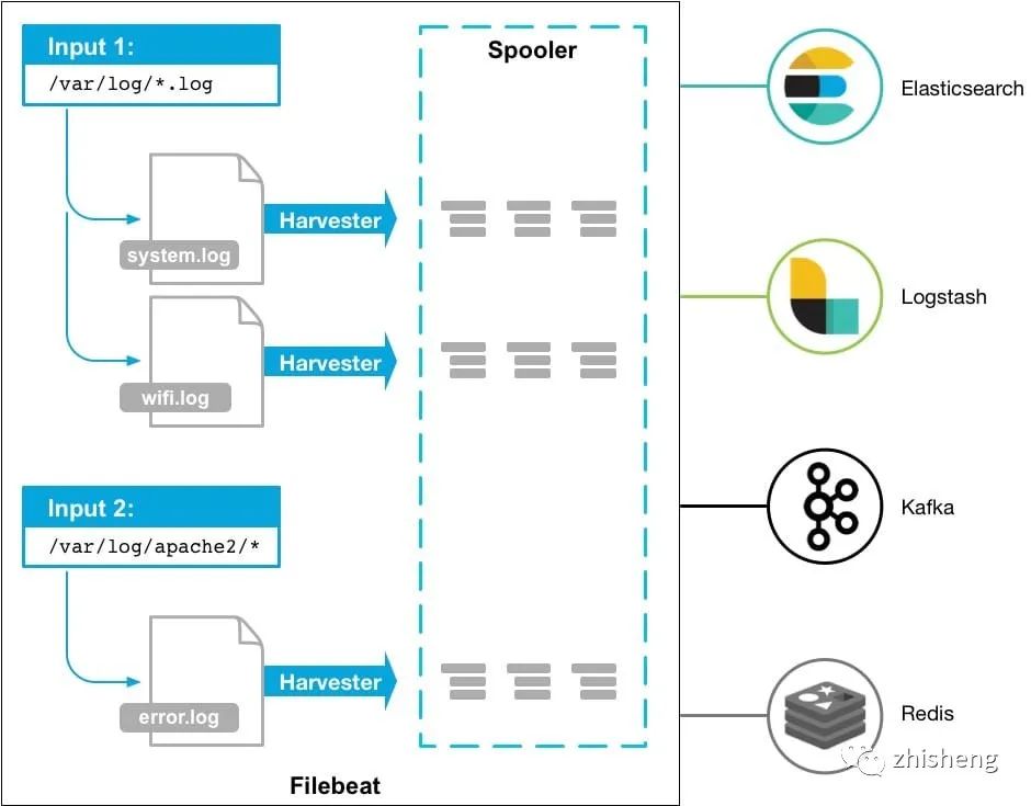 劣势:Filebeat 的应用范围十分有限,所以在某些场景下我们会碰到问题。例如,如果使用 Logstash 作为下游管道,我们同样会遇到性能问题。正因为如此,Filebeat 的范围在扩大。开始时,它只能将日志发送到 Logstash 和 Elasticsearch,而现在它可以将日志发送给 Kafka 和 Redis,在 5.x 版本中,它还具备过滤的能力。