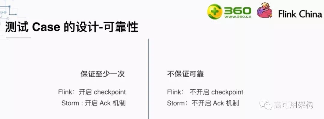 事实上exactly-once可靠性的保证跟处理的逻辑和结果输出的设计有关。比如结果要输出到kafka中,而输出到kafka的数据无法回滚,这就无法保证exactly-once。我们在测试的时候选用的at-least-once语义的可靠性和不保证可靠性两种策略进行测试。