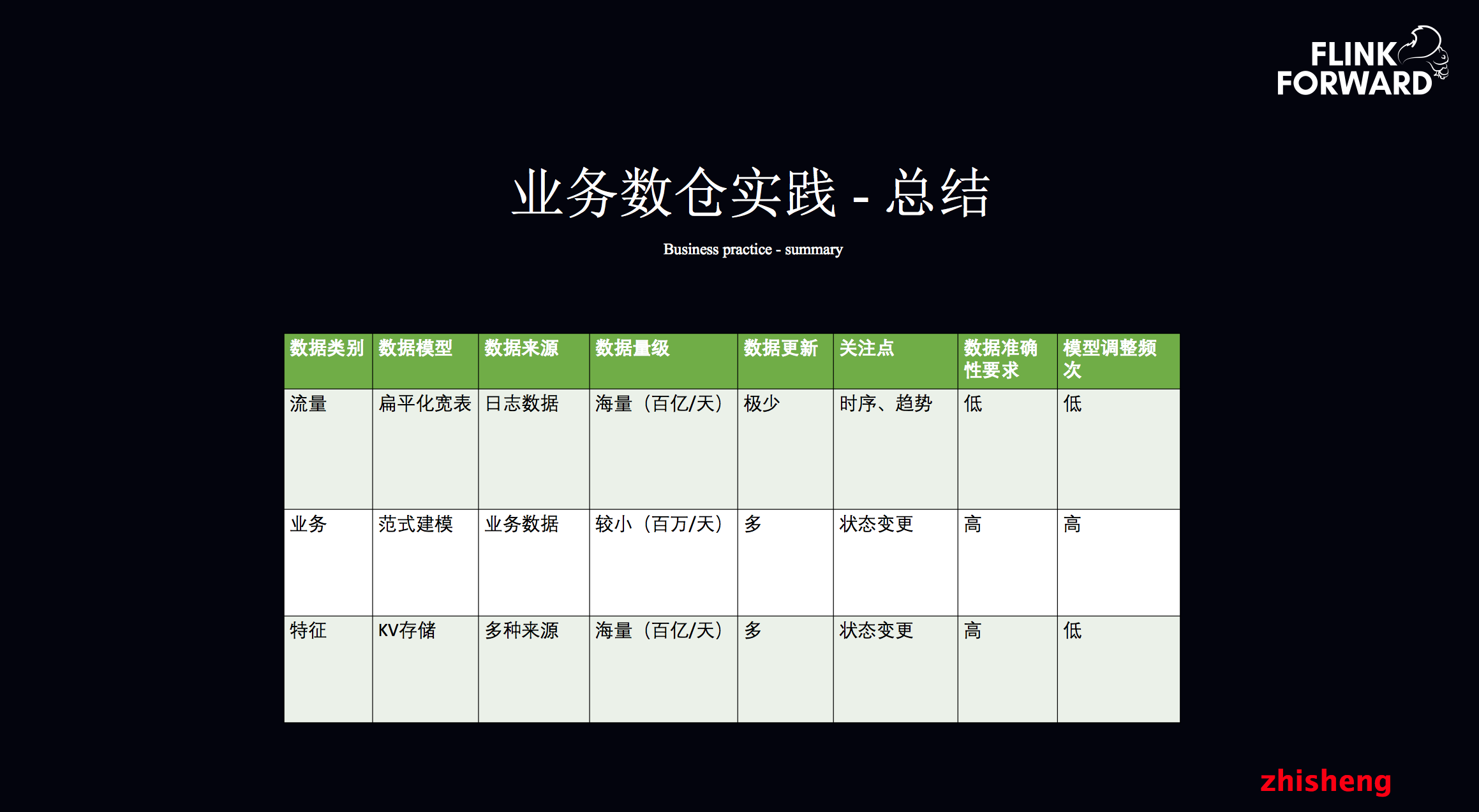 在数据模型上,流量类是扁平化的宽表,业务数仓更多是基于范式的建模,特征数据是 KV 存储。