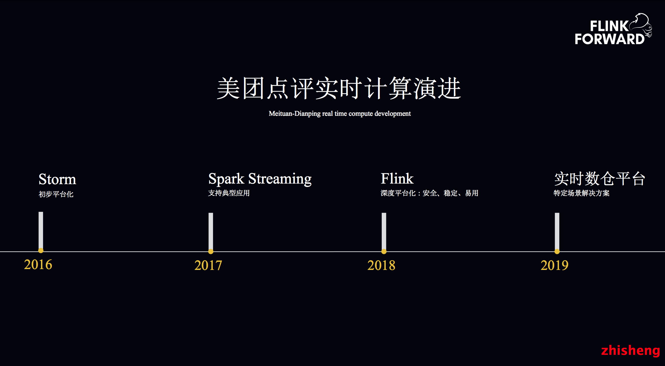 在 2016 年,美团点评就已经基于 Storm 实时计算引擎实现了初步的平台化。2017 年初,我们引入了 Spark Streaming 用于特定场景的支持,主要是在数据同步场景方面的尝试。在 2017 年底,美团点评实时计算平台引入了 Flink。相比于 Storm 和 Spark Streaming,Flink 在很多方面都具有优势。这个阶段我们进行了深度的平台化,主要关注点是安全、稳定和易用。从 19 年开始,我们致力于建设包括实时数仓、机器学习等特定场景的解决方案来为业务提供更好的支持。