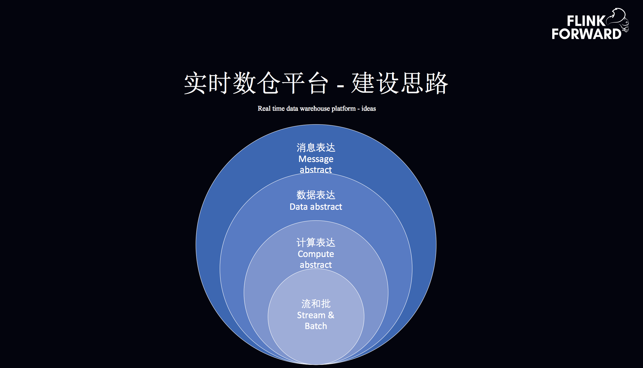 实时数仓平台的建设思路从外到内分为了四个层次,我们认为平台应该做的事情是为用户提供抽象的表达能力,分别是消息表达、数据表达、计算表达以及流和批统一。