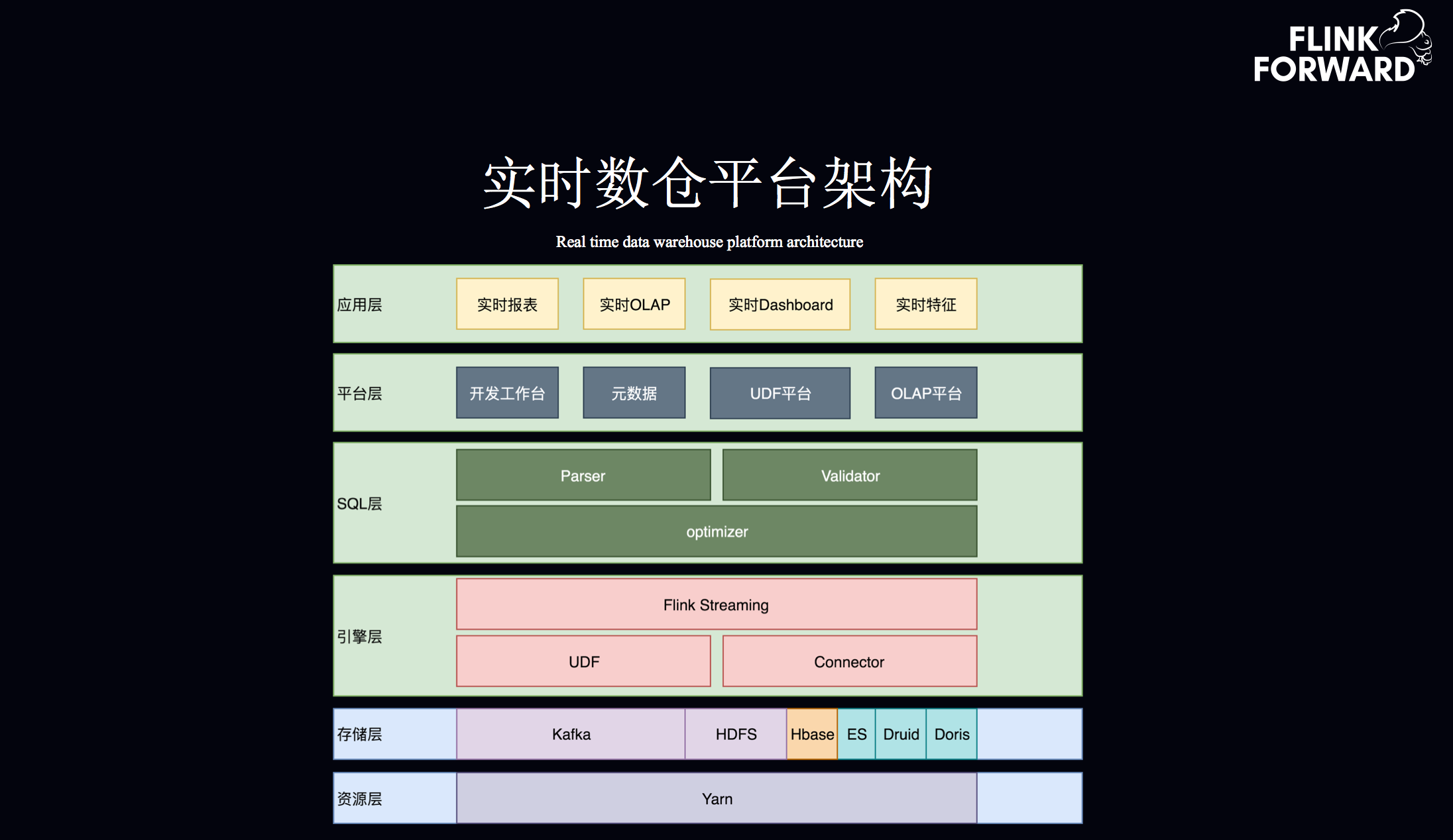 架构的最上层是应用层,包括了实时数仓、机器学习、数据同步以及事件驱动应用等。