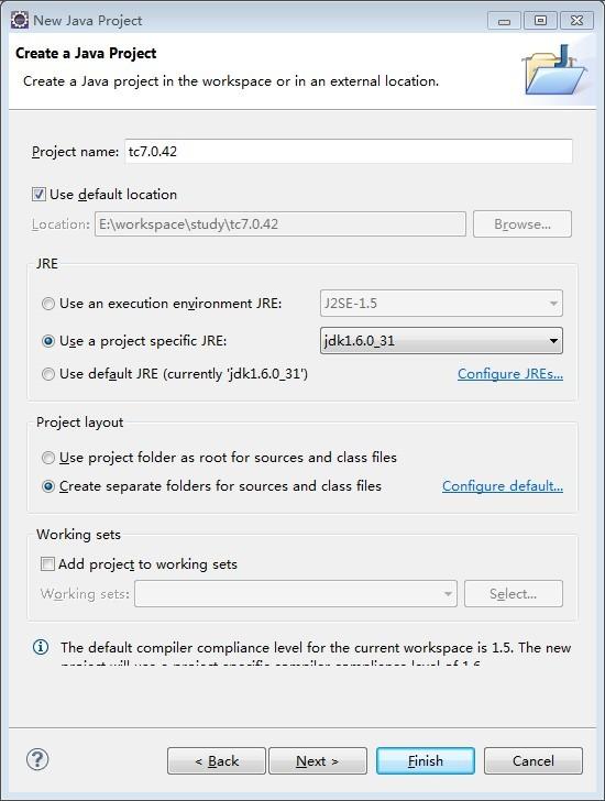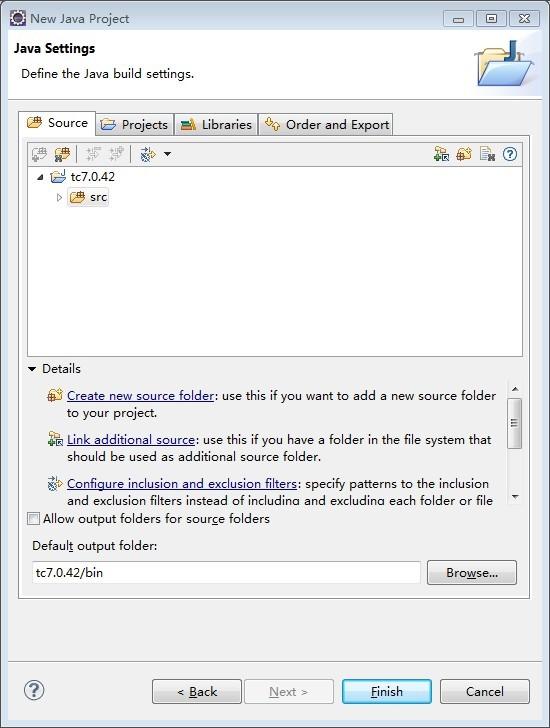 - 在 eclipse 中新建一个 java 项目,项目取名 tc7.0.42