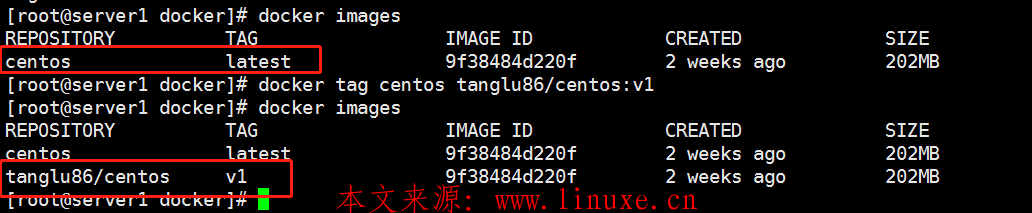 docker tag centos xxxx.aliyun.com/tanglu86/centos:v1