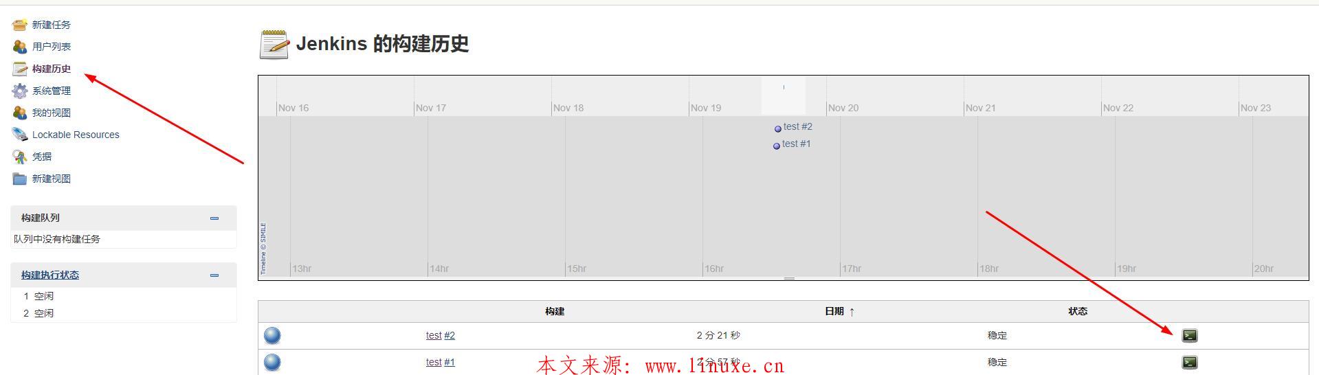 任务运行完成后通过构建历史可以看到输出结果,也可以通过控制台输出查看运行时发生的事件