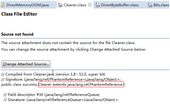那这个 Deallocator 线程是哪里调用了呢?这里就用到了 Java 的虚引用(PhantomReference),Java 虚引用允许对象被回收之前做一些清理工作。在 DirectByteBuffer 的构造方法中创建了一个 Cleaner: