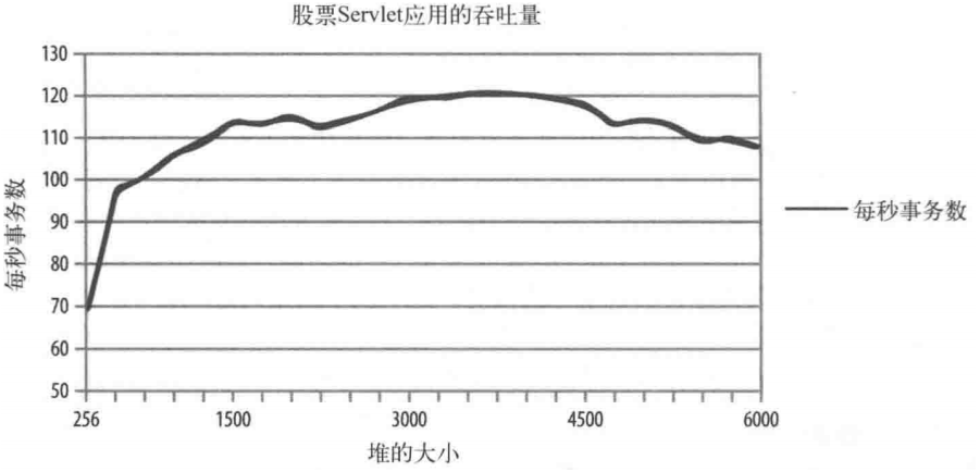 看一个示例说明堆大小与吞吐量的关系,在该示例中是关闭了JVM自适应调整堆大小的情况