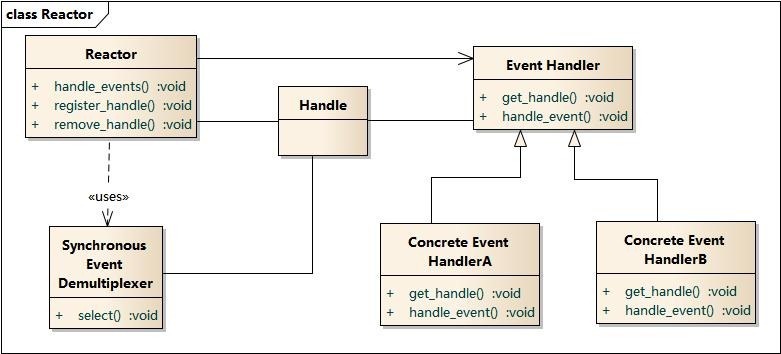 具体来说,每个应用程序提供的每个服务都有一个独立的事件处理器与之对应。由 事件处理器处理来自事件源的特定类型的事件。每个事件处理器都事先注册到Reactor管理器中。Reactor管理器使用同步事件分离器在一个或多个事件源中等待事件的发生。当事件发生后,同步事件分离器通知Reactor管理器,最后由Reactor管理器调度和该事件相关的事件处理器来完成请求的服务。