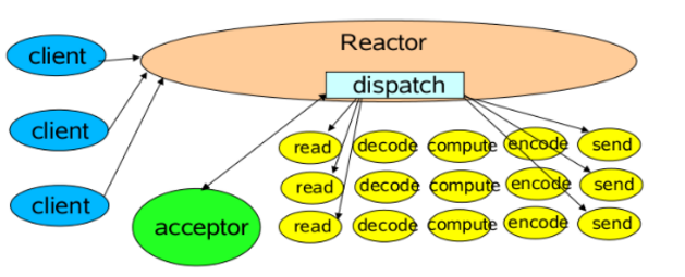 从这里可以看出,上面的五种IO模型中的多路复用IO就是采用Reactor模式。注意,上面的图中展示的 是顺序处理每个事件,当然为了提高事件处理速度,可以通过多线程或者线程池的方式来处理事件。