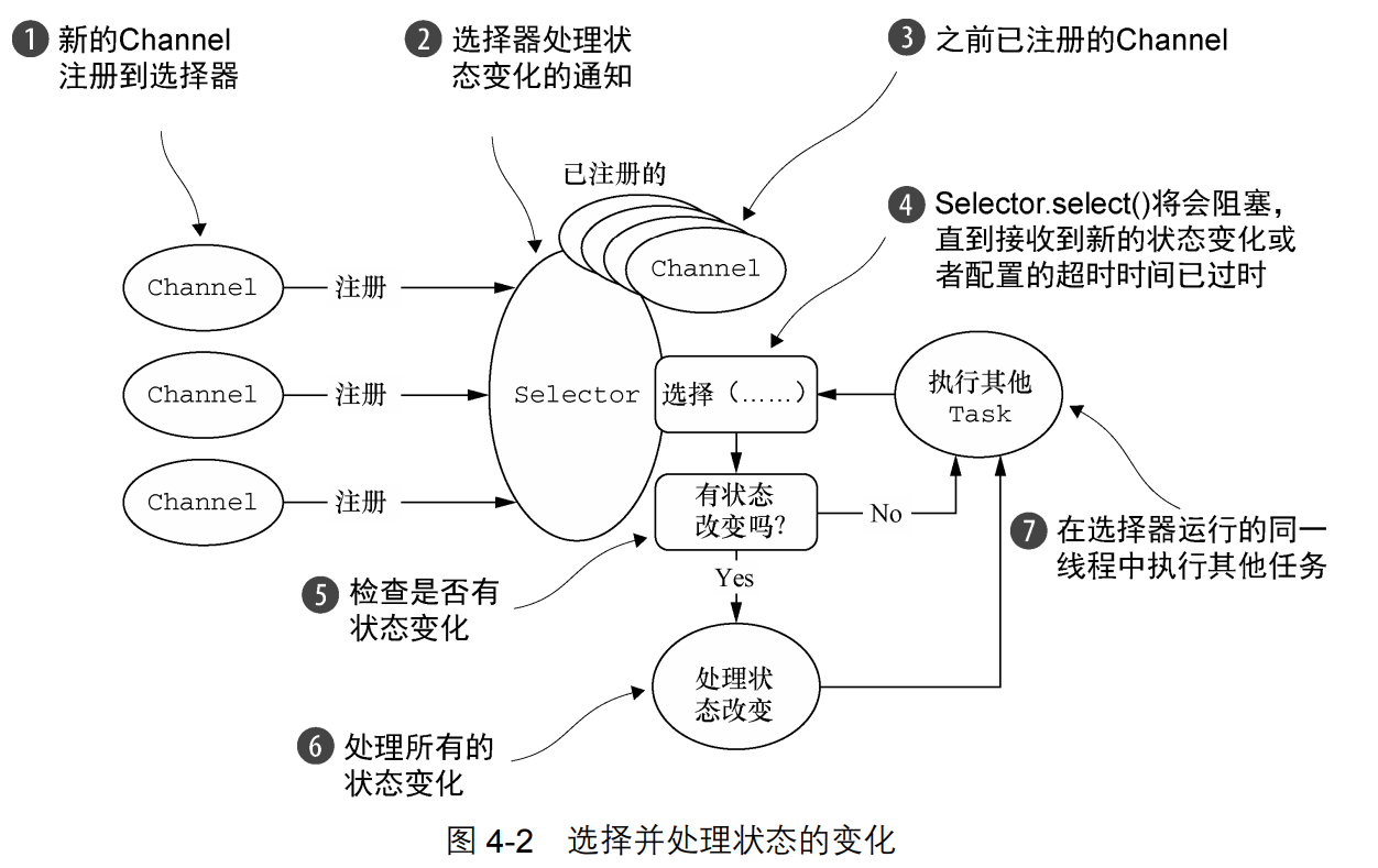 与Selector一起使用时,Channel必须处于非阻塞模式下。这意味着不能将FileChannel与Selector一起使用,因为FileChannel不能切换到非阻塞模式。而套接字通道都可以。