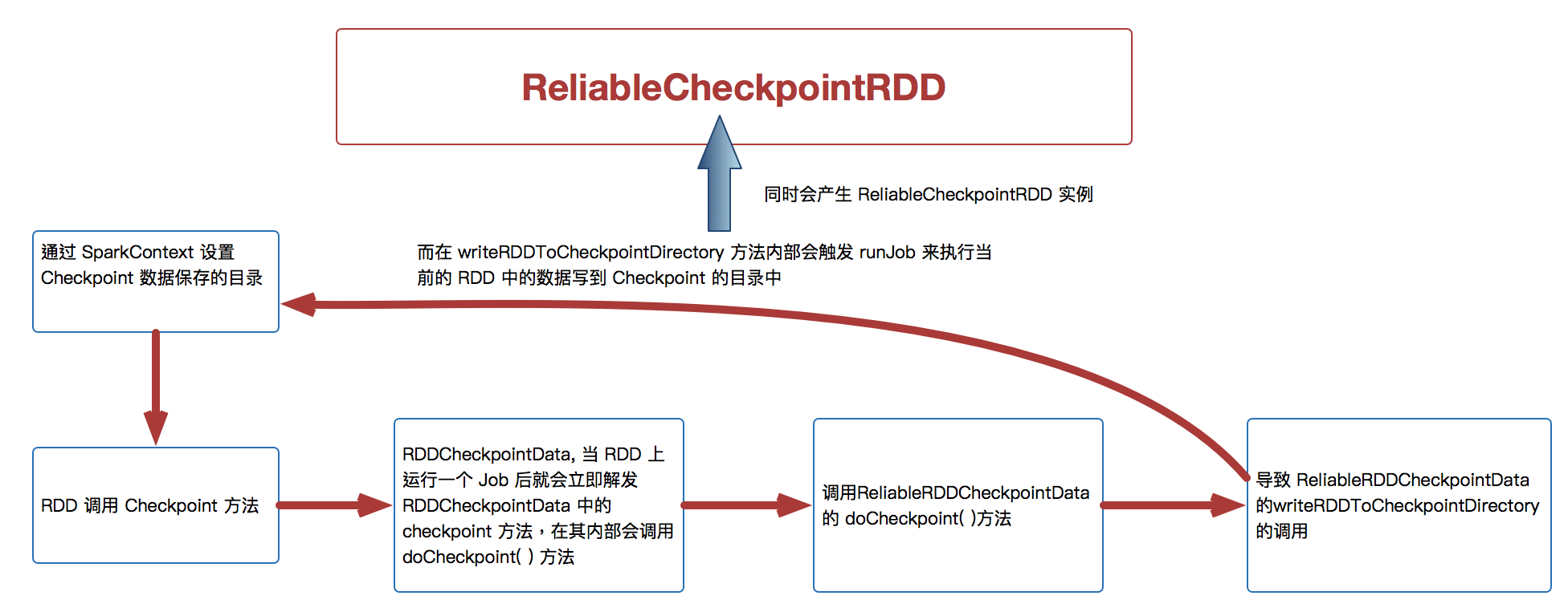 3、在进行 RDD 的 Checkpoint 的时候,其所依赖的所有 RDD 都会清空掉;官方建议如果要进行 checkpoint 时,必需先缓存在内存中。但实际可以考虑缓存在本地磁盘上或者是第三方组件,e.g. Taychon 上。在进行 checkpoint 之前需要通过 SparkConetxt 设置 checkpoint 的文件夹