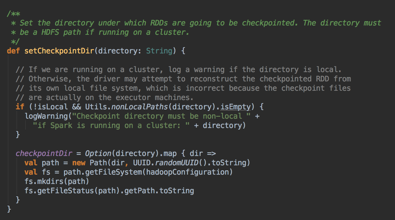 [下图是 RDD.scala 中的 checkpoint 方法]