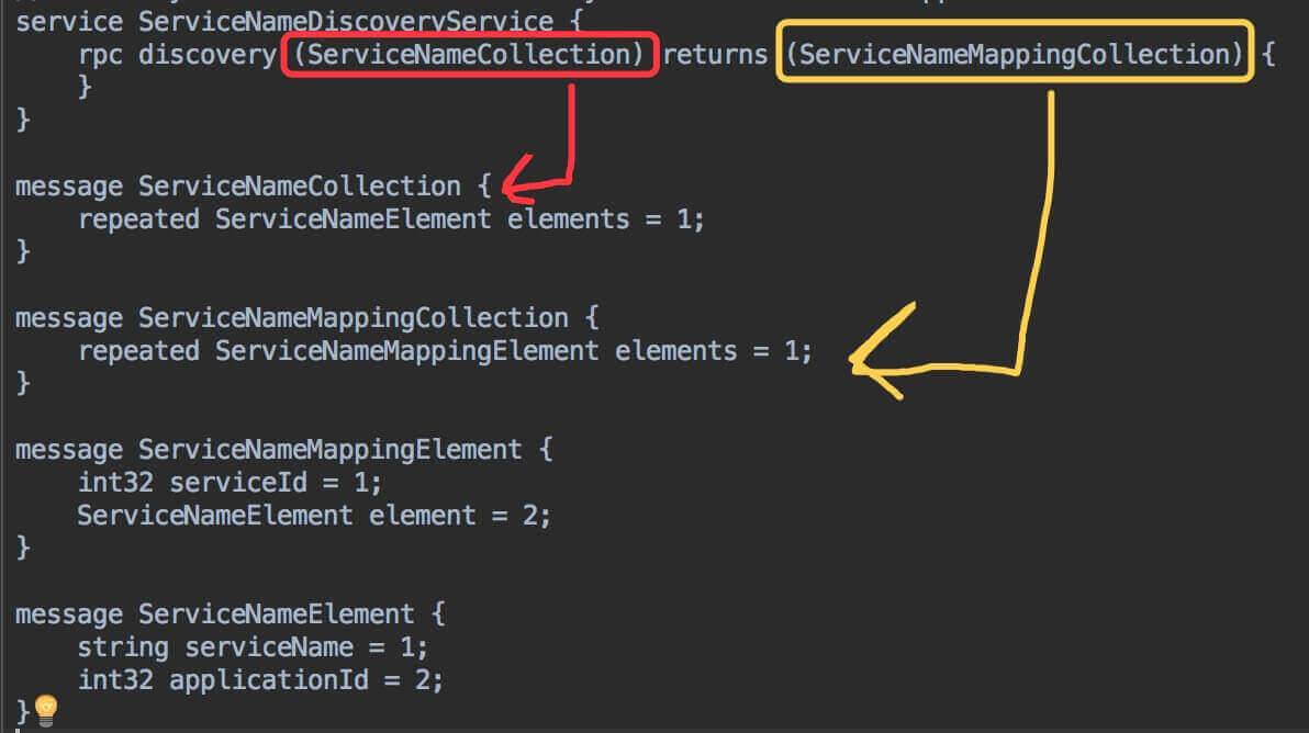 我们先来看看 API 的定义,DiscoveryService ,如下图所示: