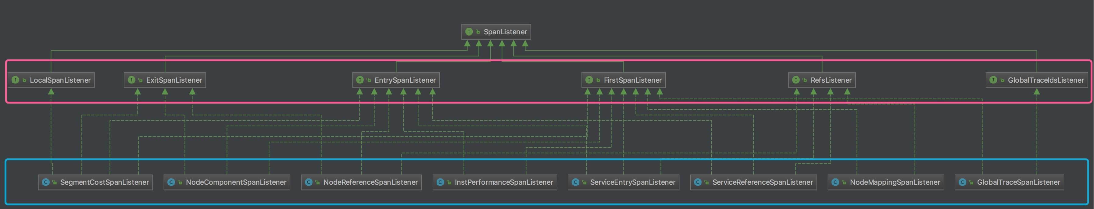 org.skywalking.apm.collector.agent.stream.worker.trace.segment.SegmentCostSpanListener ,SegmentCost 的 SpanListener ,实现了 FirstSpanListener 、EntrySpanListener 、ExitSpanListener 、LocalSpanListener 接口。
