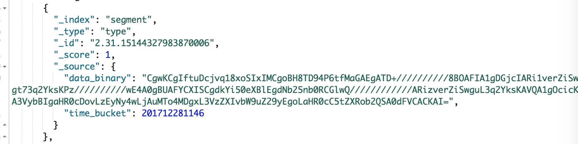 org.skywalking.apm.collector.storage.es.dao.SegmentEsPersistenceDAO,GlobalTrace 的 EsDAO 。- 在 ES 存储例子如下图: