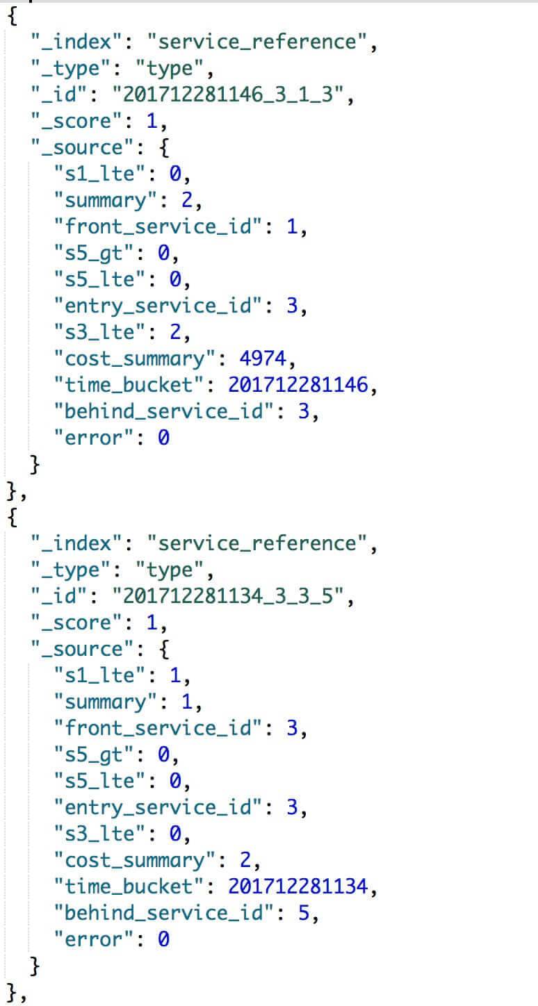 org.skywalking.apm.collector.storage.es.dao.ServiceReference,ServiceReference 的 EsDAO 。- 在 ES 存储例子如下图: