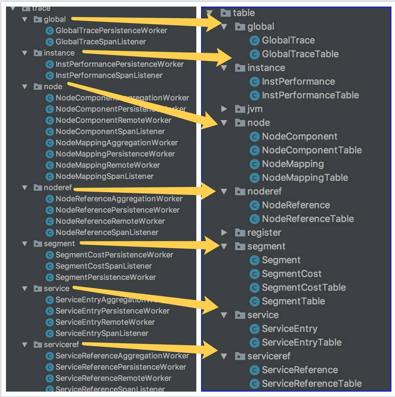 org.skywalking.apm.collector.storage.table.serviceref.ServiceReference ,入口操作调用统计,用于记录入口操作的调用,基于入口操作级别的,以分钟为时间最小粒度的聚合统计。