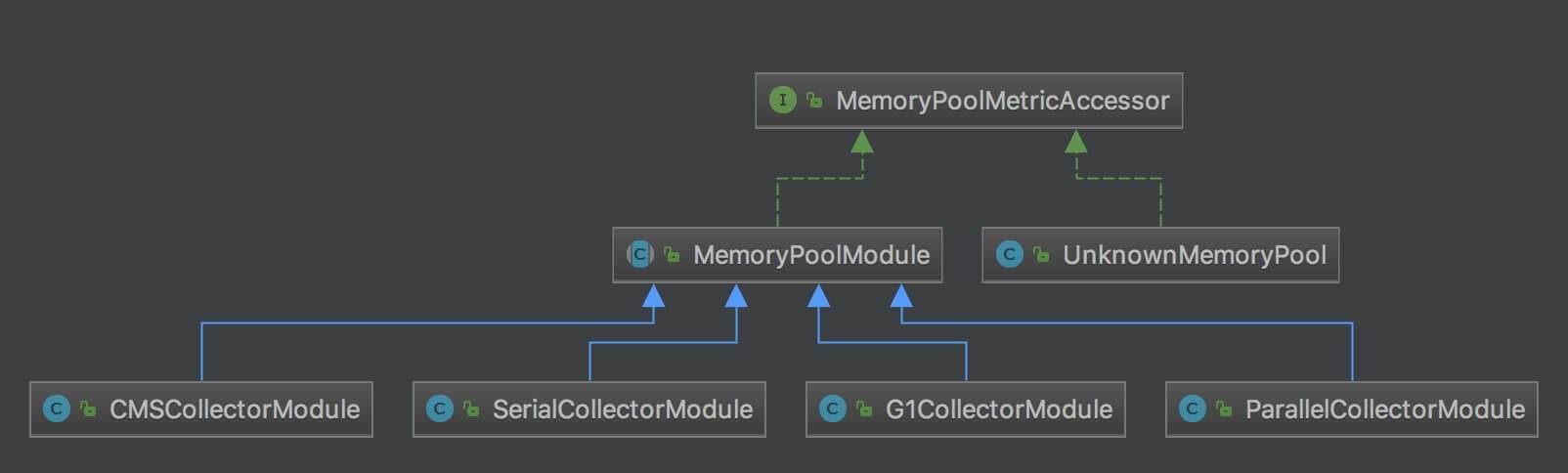 - UnknownMemoryPool ,未知的 MemoryPool 指标访问器实现类。每次