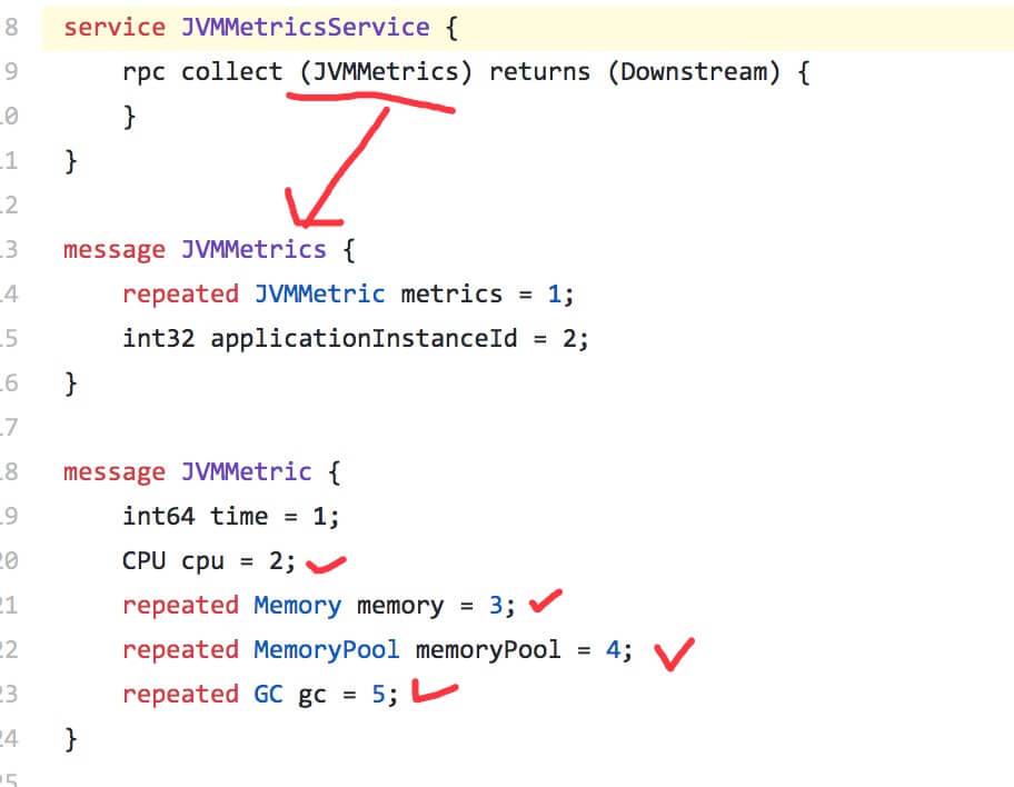 我们先来看看 API 的定义,JVMMetricsService.proto ,如下图所示: