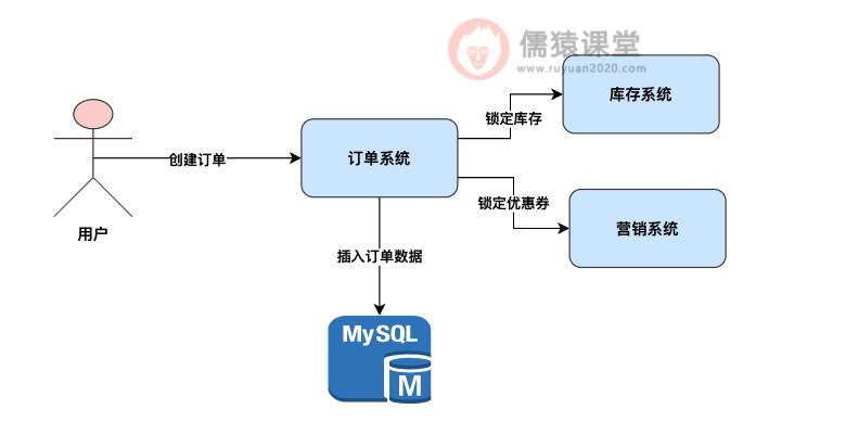 举个最简单的例子,假设现在你负责了一个订单系统,一个库存系统,一个营销系统,然后呢,当你的订单系统收到用户一个请求要创建订单的时候,这个时候你得做三件事情。