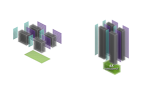 第三代Tensor Core采用全新精度标准Tensor Float 32(TF32)与64位浮点(FP64),以加速并简化人工智能应用,可将人工智能速度提升至最高20倍。