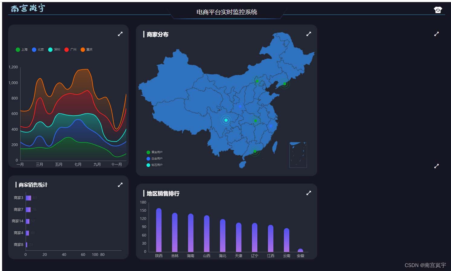 VUE3+Echarts报错Cannot read property ‘type‘ of undefined 最近在做Echarts项目的时候,在组件引用的时候出现了一点小问题左下角的组件应用之后,控制台报错且连带着右侧两个能正常运行的组件失效了。查阅资料,发现可能是“商家销售统计”的组件在数据读取是响应式的原因,在响应代码中加上1import { markRaw } from '@vue/reactivity';在图表初始化的引...