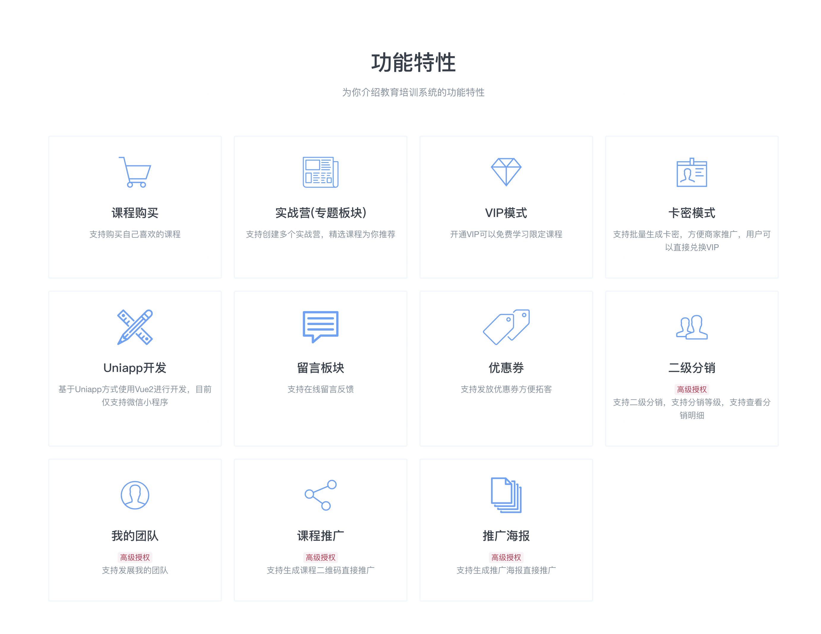 教育培训系统V1.2.2 为继续教育、企业培训、考试学习等场景提供一站式学习资料平台,支持课程购买、VIP会员等方式进行在线付费学习。提供前后台无加密源代码,支持私有化部署。V1.2.2修复已知问题修复已知问题 ...