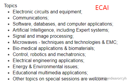 | ECAI(B) | 2022:December 1, 2021 2021:没开 2020:Nov 19, 2019 2018:Jan 31, 2018 两年开一次 | |